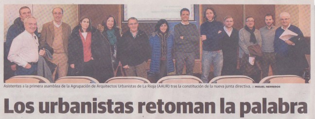 Con motivo de la Asamblea Anual de la Agrupación de Urbanistas, el periodista Javier Campos del Diario La Rioja nos hizo un reportaje que incluimos escaneado a continuación. Desde aquí queremos agradecer al periodista Javier Campos y a los fotógrafos M. Herreros y R. Carbonero por su colaboración en el reportaje, así como a todas … Continúa leyendo Publicación en el Diario La Rioja 22.01.2017